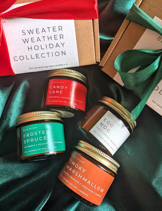 Inspired by the charm and comfort of frosty Canadian winters, the Sweater Weather Holiday Collection brings the magic of the holidays into your home. Nothing beats the ambiance of the season quite like the perfect candle paired with a cozy sweater and scents that feel like a warm hug on a chilly day.